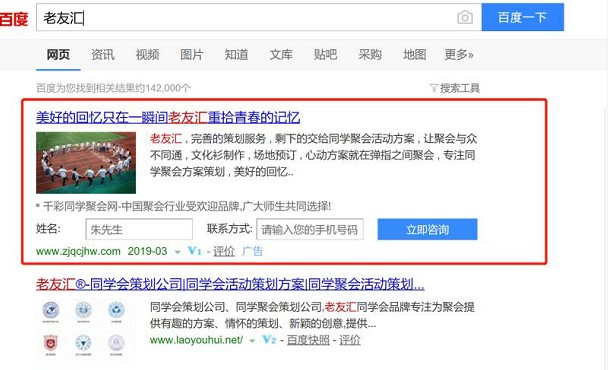 我司已于2016年2月14日取得“老友汇”商标证书,注册号为15630066,41类;于2016年12月7日取得老友汇logo的图形商标,注册号为15630065,41类。一些别有用心的企业未经授权私自使用“老友汇”关键词做推广,为自己的网站引流,严重损害了老友汇®同学会品牌声誉,对客户产生了严重误导。